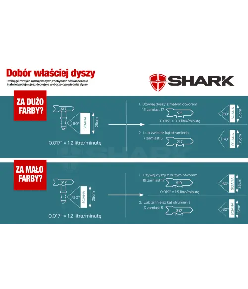 Pierwsza cyfra z numeru dyszy oznacza kąt natrysku, w tym wypadku jest to 10°. Pamiętaj, że idealna odległość dyszy od natryskiwanej powierzchni to ok. 30 cm.