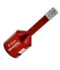 Koronka diamentowa wykonana w technologii próżniowego lutowania zapewnia szybkość i wytrzymałość podczas wiercenia w najtwardszych materiałach. Koronka z wyciętymi, bocznymi otworami do wentylowania i usuwania ubytków. Optymalna wysokość nasypu diamentowego.