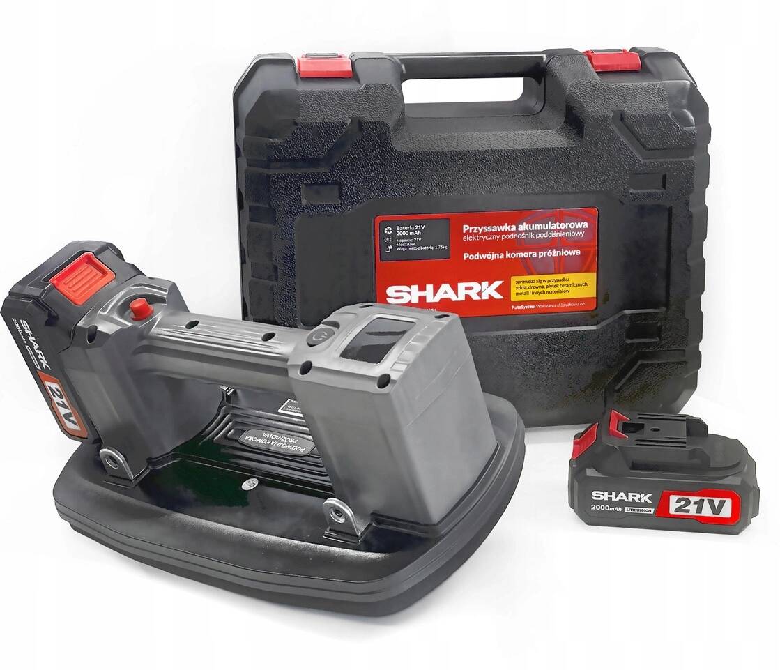 Przyssawka SH-DX51 to w pełni automatyczny chwytak próżniowy o dużej sile podnoszenia. Jest najbardziej zaawansowanym narzędziem do wspomagania transportu. W zestawie 2x 21V akumulator 2000 mAh pozwala na bardzo długi czas pracy. Owalny kształt, podwójna komora próżniowa, zwiększona powierzchnia podstawy i wielowarstwowa uszczelka z gumy piankowej ułatwiają bezpieczne przenoszenie dużych, ciężkich elementów